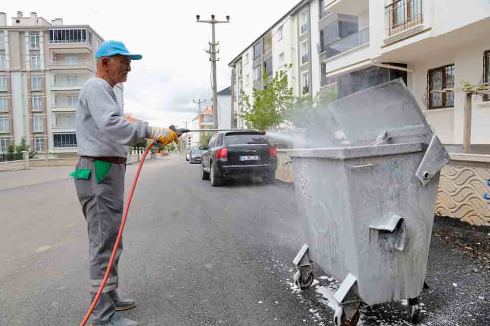 Belediyeye bağlı Temizlik İşleri Müdürlüğü ekiplerince cadde, sokak ve mahallelerde bulunan çöp konteynerleri belirli periyotlarda bol köpüklü su ile yıkanıyor. Ekiplerce düzenli olarak yıkanan ve dezenfekte edilen çöp konteynerlerinde kötü koku oluşumu, virüs bakteri ve sağlığa zararlı sinek ve larvaların oluşumunun önüne geçilmiş olunuyor.