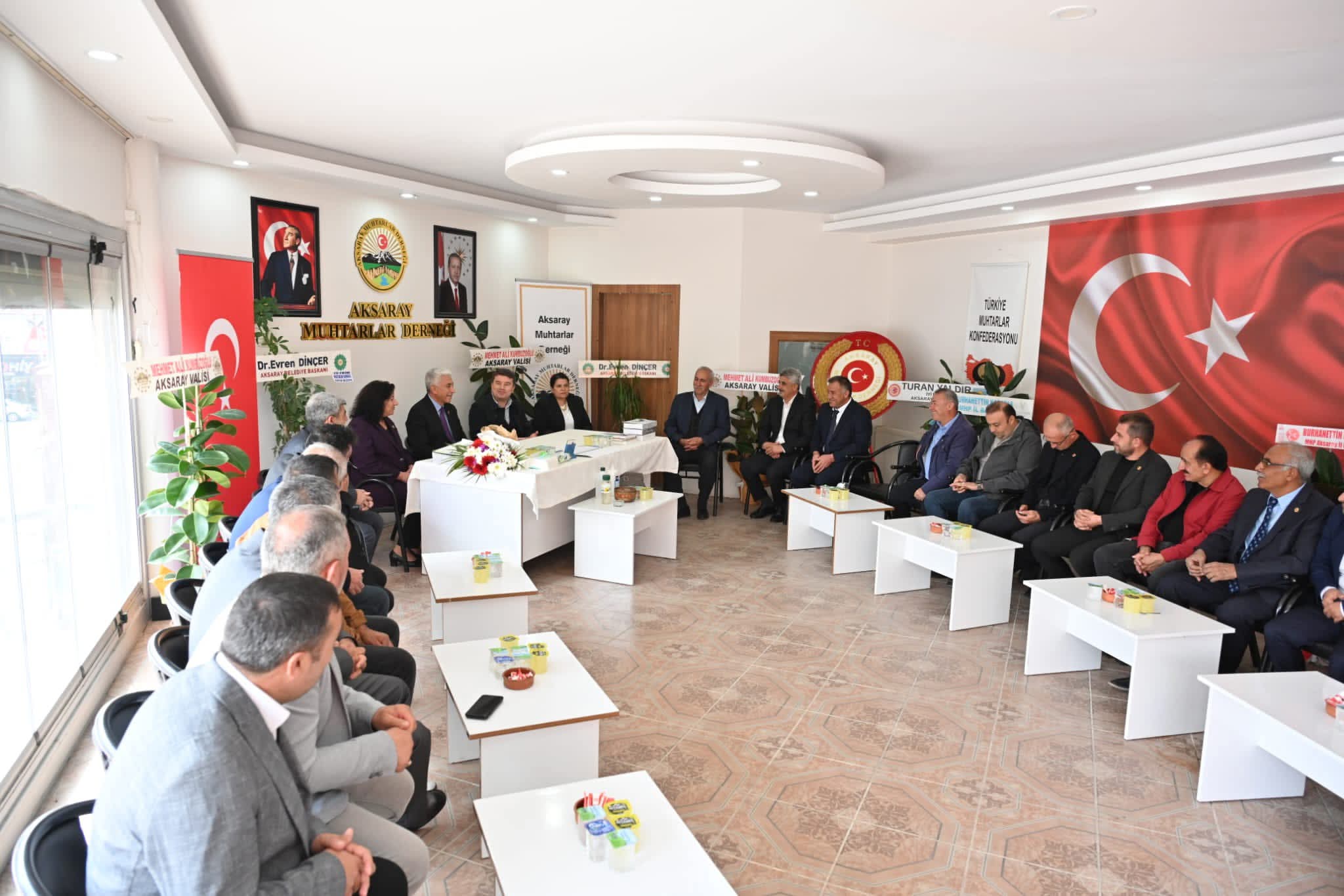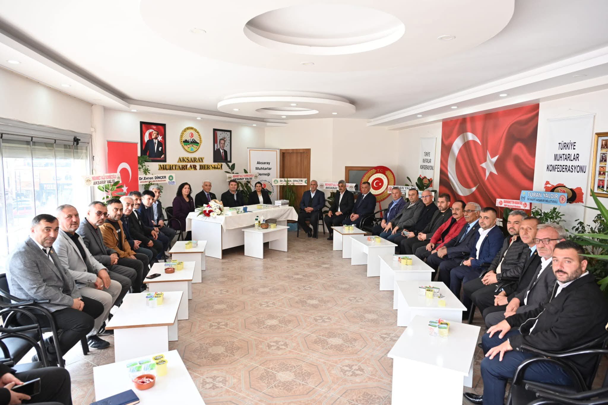 Belediye Başkanı Dr. Evren Dinçer, Aksaray Muhtarlar Derneği’ni ziyaret ederek merkez mahalle muhtarlarıyla bir araya geldi. Ziyarette, Muhtarlar Derneği Başkanı Fikret Dağ da hazır bulundu. Başkan Dinçer, muhtarların taleplerini tek tek dinledikten sonra, Ziraat Odası Toplantı Salonu’nda Köy Muhtarları Derneği Başkanı Emin Koçak’ın organize ettiği köy muhtarlarıyla toplantı gerçekleştirdi.