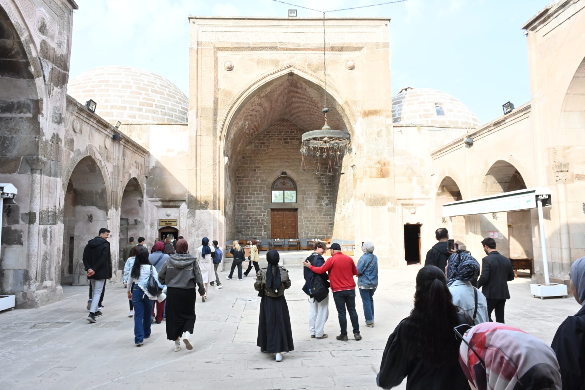BAŞKAN DİNÇER, ÜNİVERSİTELİ GENÇLER E ŞEHRİN TARİHİ VE KÜLTÜREL MEKANLARINI GEZ DİREREK TANITTI
