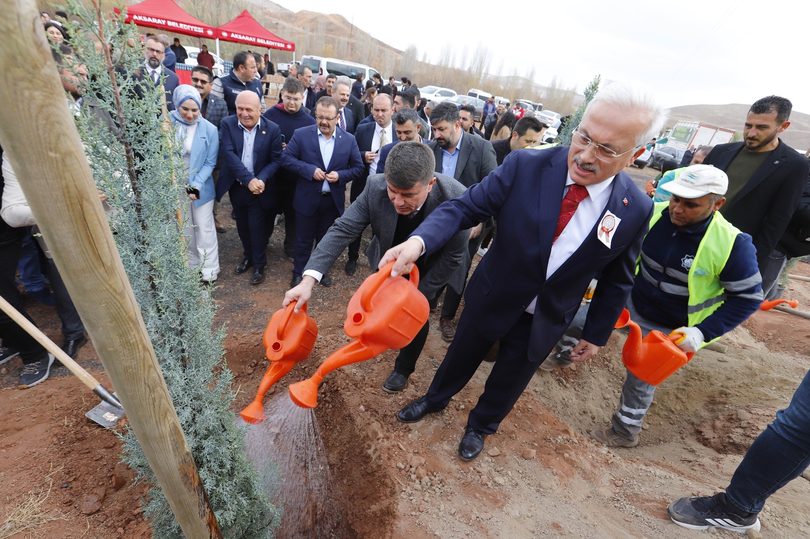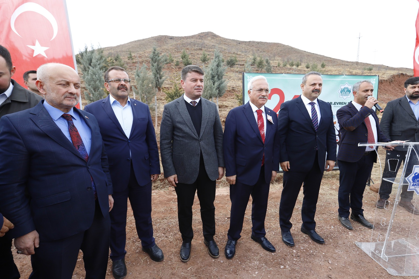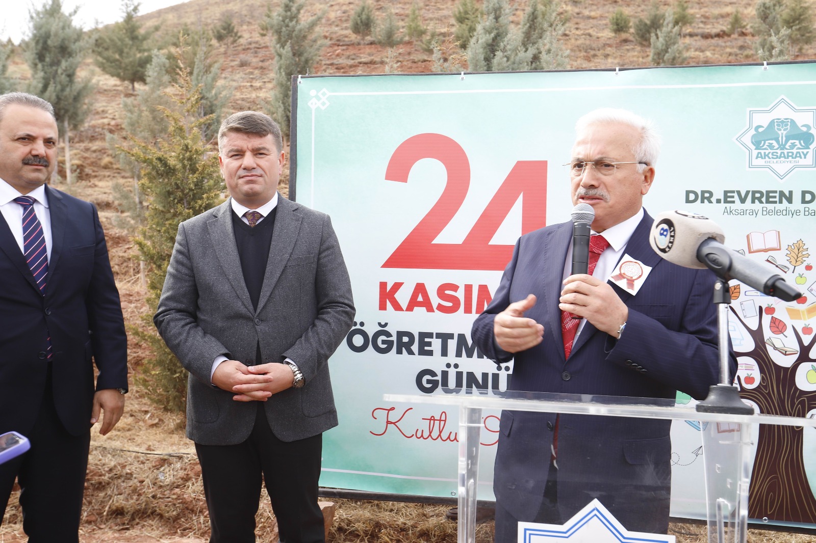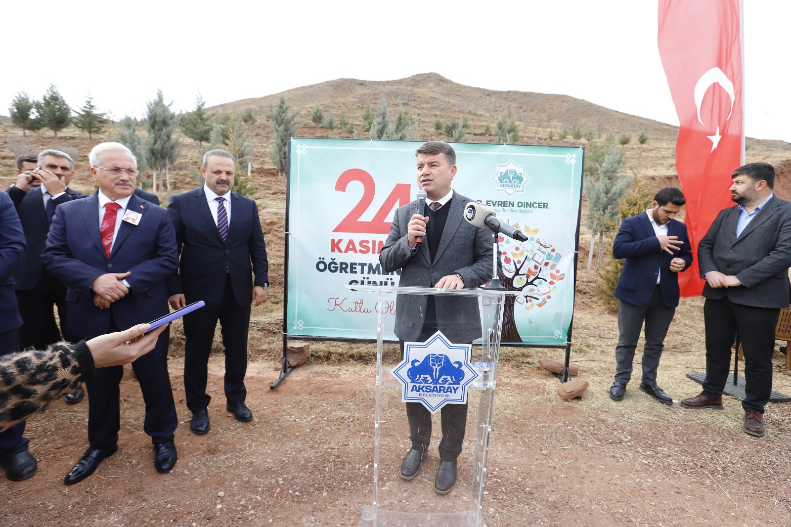 Başkanımız Dr. Evren Dinçer’i bugünü anlamlandırdığı ve böylesine önemli bir organizasyonu düzenlediği için tebrik ediyorum. Yeni sloganımızın Aksaraylılar tarafından duyulmasını istiyorum ‘Her yıl 1 milyon’ hedefimiz var. Orman İşletme Müdürümüz Abidder Yurtman’ı da ayrıca tebrik ediyorum. Bizim iki önemli görevimiz var. Ormanlarımızı yangından korumak ve fidan dikmek. Bugün bütün öğretmenlerimiz, öğrencilerimiz, din görevlilerimiz ve vatandaşlarımızla birlikte fidan dikiyoruz. Hayırlı uğurlu olsun. Başta Başöğretmen Mustafa Kemal Atatürk olmak üzere tüm öğretmenlerimizin gününü kutluyorum. Ahirete irtihal etmiş öğretmenlerimize Allah’tan rahmet diliyorum” dedi.