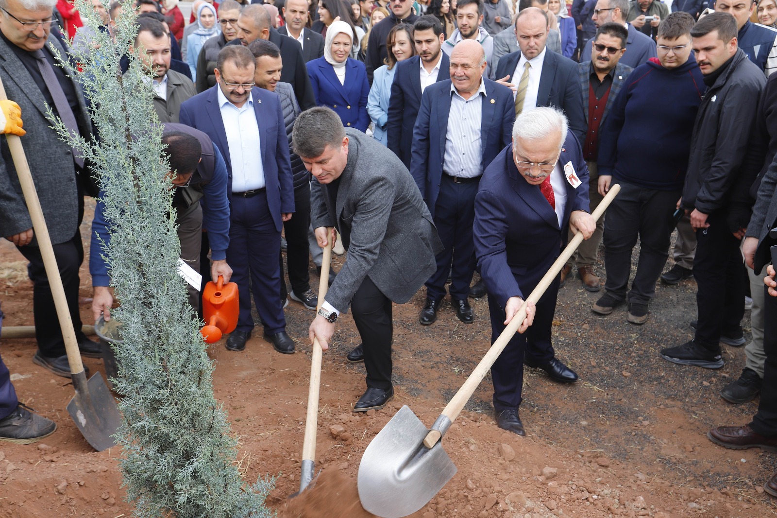 Konuşmaların ardından protokol üyeleri, öğretmenler ve öğrenciler kendileri için ayrılan alanlarda fidan dikti. Her bir fidanın üzerine isimlerinin yazılı olduğu etiketler yerleştirilerek, katılımcılar fidanları kendi adlarına toprakla buluşturdu.