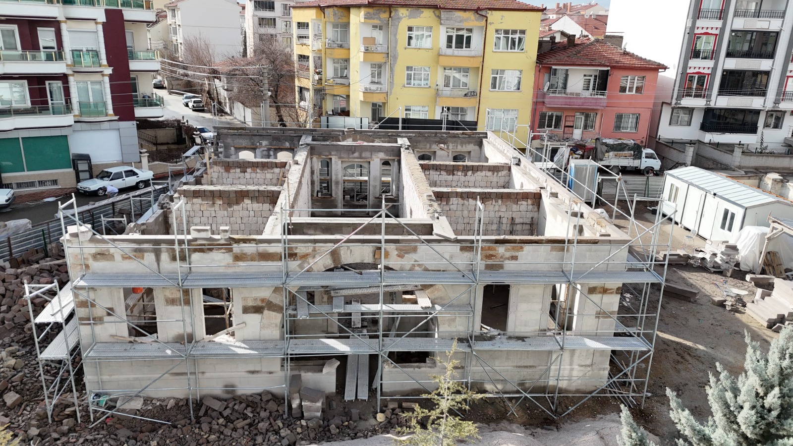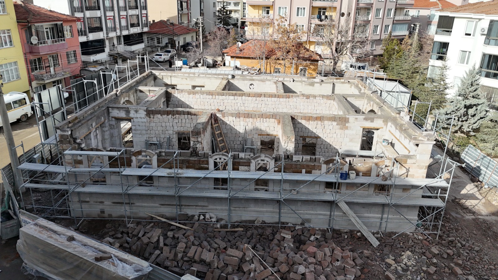 Kültür Konağı olarak hizmet vermesi planlanan tarihi yapıda yürütülen çalışmalar kapsamında kemerler ve duvarlar gözle görülür biçimde yükselirken, konağın özgün mimari dokusu yeniden ortaya çıkarılıyor. Çalışmaların Çerdiğin Mahallesi’nin çehresini değiştirecek önemli bir dönüşümün başlangıcı olduğunu belirten Belediye Başkanı Dr. Evren Dinçer, Aksaray’ın tarihi mirasına büyük önem verdiklerini vurguladı.