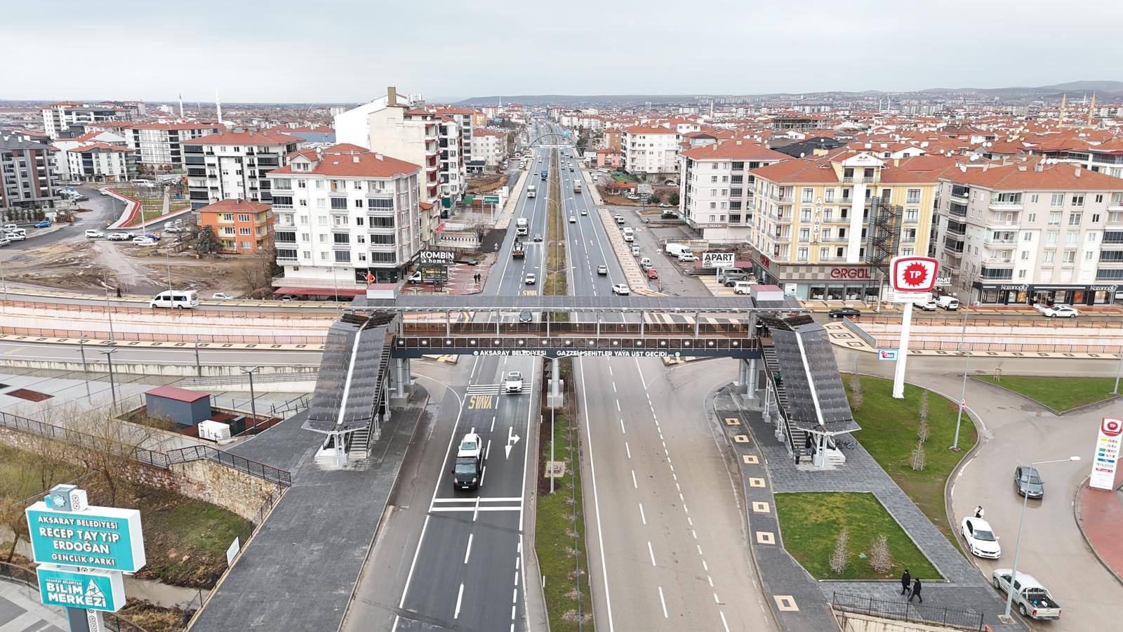 Aksaray Belediyesi, şehir genelinde ulaşım güvenliğini artırmaya yönelik yatırımlarına bir yenisini daha ekledi. Bu kapsamda Tacin Mahallesi E-90 Kavşağı’nda yapımı tamamlanan “Gazzeli Şehitler Yaya Üst Geçidi” vatandaşların kullanımına sunuldu. Yoğun araç trafiğinin bulunduğu önemli bir güzergâhta hayata geçirilen proje, özellikle yaya güvenliğini güçlendirmeyi amaçlıyor.