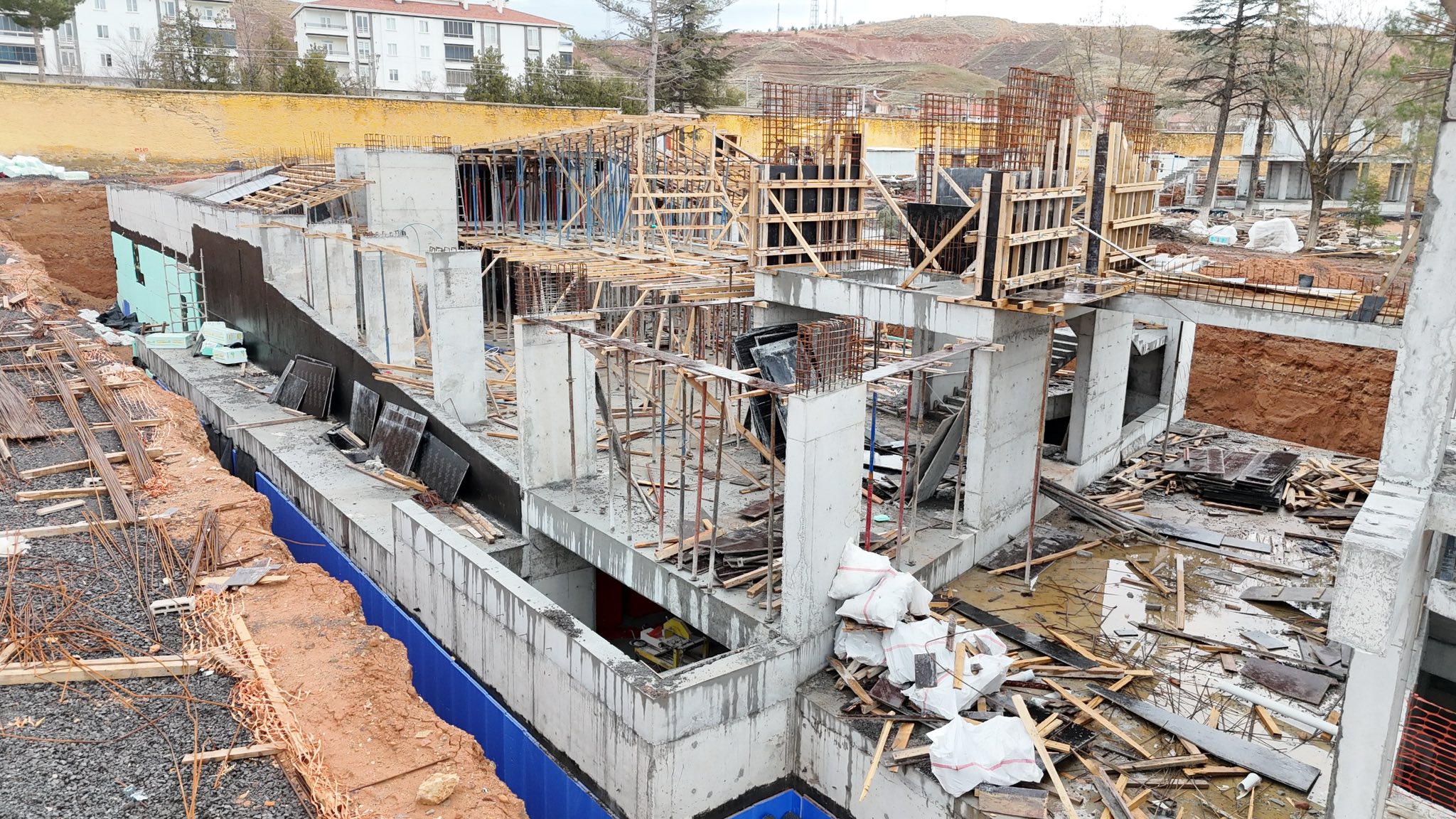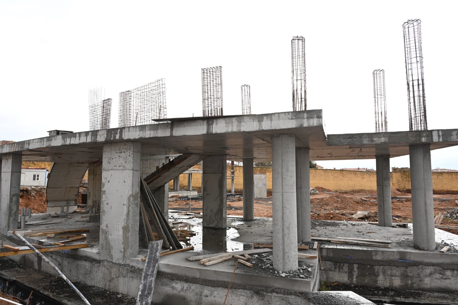 Kısa süre önce temeli atılmasına karşın kış mevsimi koşullarında çalışmalar kesintisiz şekilde sürdürülürken kültür merkezi yapısında betonarme imalatları etap etap tamamlanıyor. Spor alanlarında zemin düzenleme ve altyapı çalışmaları devam ediyor.