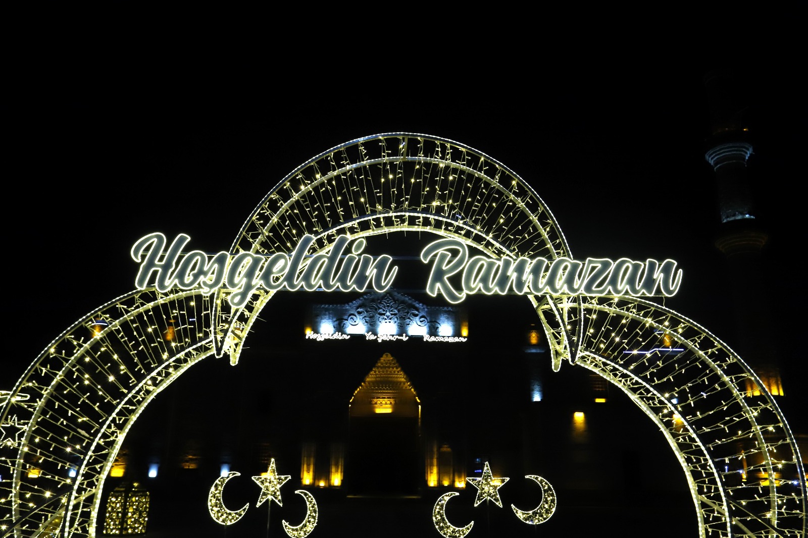 Tarihi dokusuyla şehrin en önemli simgelerinden biri olan Ulu Cami, Ramazan’a özgü ay-yıldız