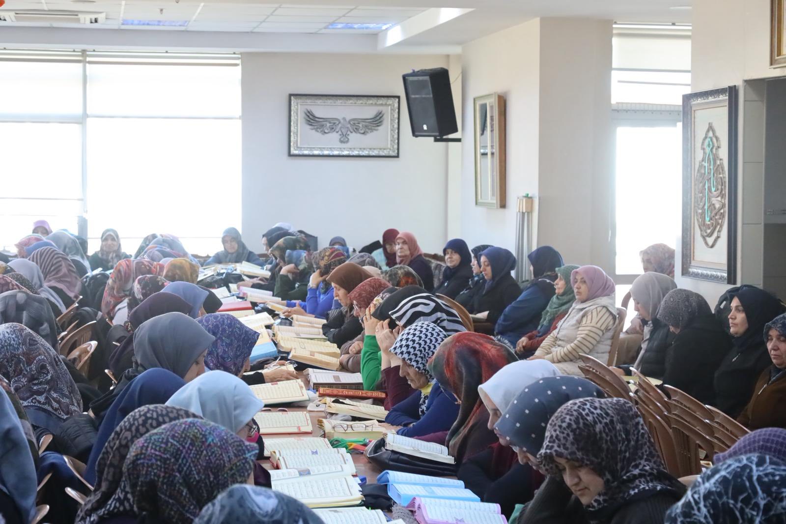 Ramazan ayının manevi atmosferini birlikte yaşamak isteyen kadınların yoğun ilgi gösterdiği programlarda, Kur’an-ı Kerim tilaveti ve dualar eşliğinde huzurlu bir ortam oluşuyor. Katılımcılar hem ibadetlerini cemaatle yerine getirmenin hem de bilgi paylaşımında bulunmanın memnuniyetini dile getiriyor.