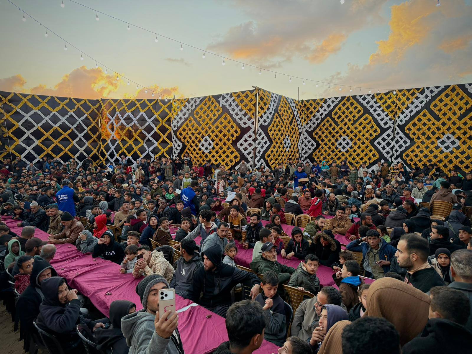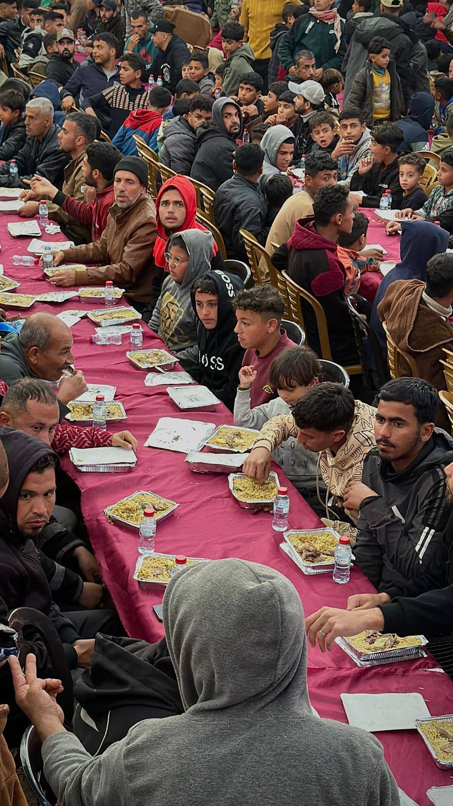 Gazze’de oluşturulan iftar programı çerçevesinde ihtiyaç sahiplerine düzenli olarak sıcak yemek ikramında bulunuluyor. Özellikle çocuklar, yaşlılar ve ailelerin yoğun katılım gösterdiği iftar buluşmaları, yalnızca günlük gıda ihtiyacının karşılanmasına katkı sunmakla kalmıyor; aynı zamanda Ramazan ayının manevi atmosferini güçlendiren bir dayanışma ortamı oluşturuyor.